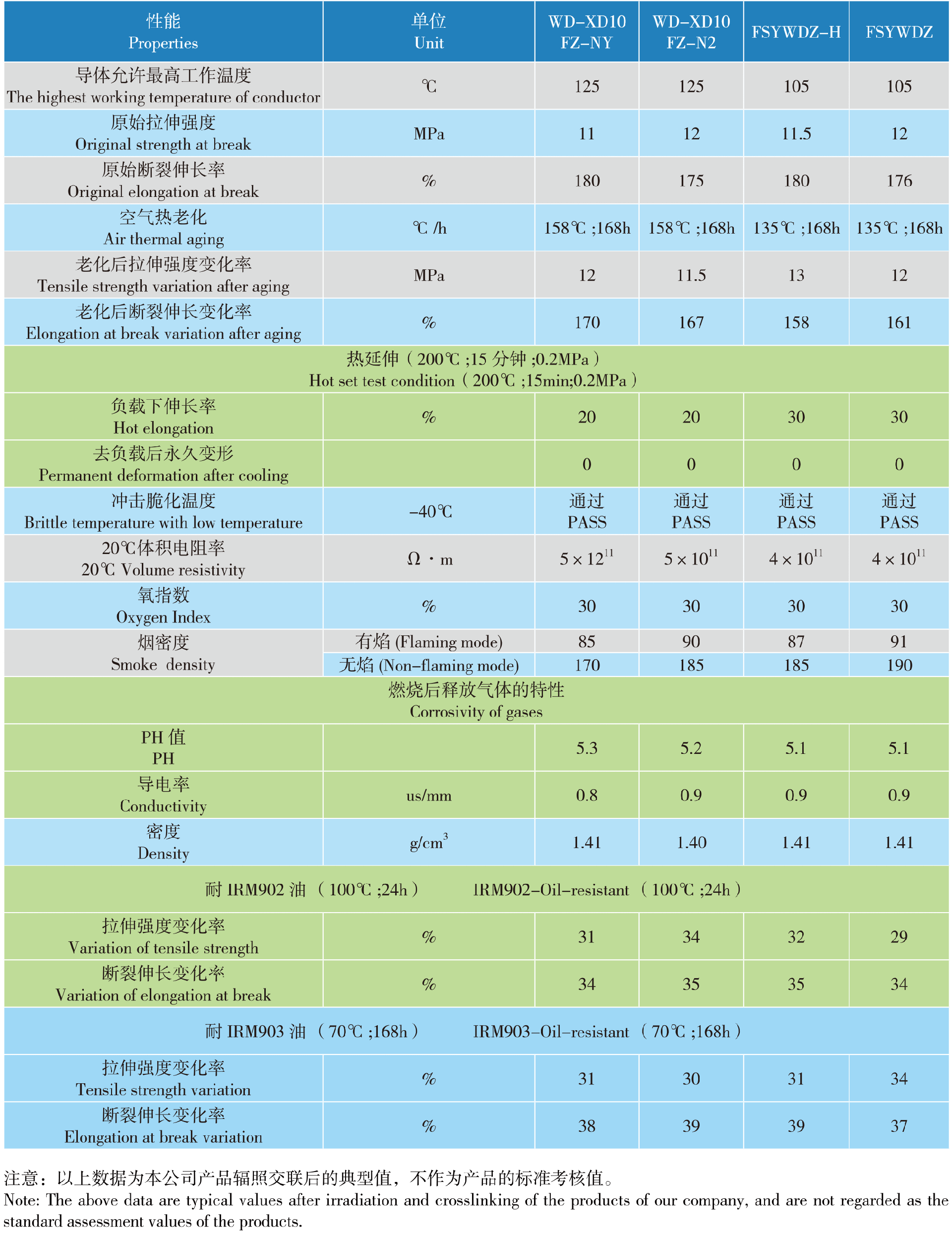 本系列輻照交聯無鹵低煙阻燃耐油護套料,產品適用于機車船舶等耐油性要求高的中、低壓電纜。該材料具有優異的耐油性及物理機械性能,阻燃性和電氣性能良好,加工性能優良。